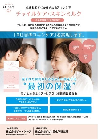 赤ちゃんの皮膚バリアーは非常に弱くデリケートです。保湿剤は長期にわたり使用されることが多く、その赤ちゃんの肌に今回の保湿剤チャイルケアスキンミルクを開発しました。チャイルケアスキンミルクで赤ちゃんの健やかな肌を守りたいと考えています。