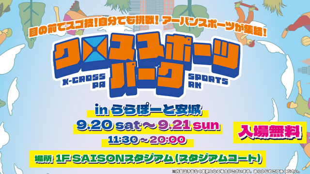 イベント名:クロススポーツパーク in ららぽーと安城日程 :2025年9月20日(土)・21日(日) 11:30~20:00
