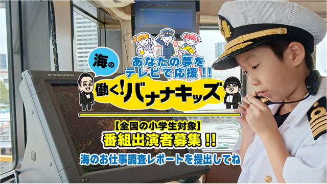 一般社団法人海と日本プロジェクトin東京は、テレビ東京の特別番組「働く!バナナキッズ」とコラボレーションし、海に関わるお仕事がしたい小学生を大募集!対象は全国の小学生。募集期間は2025年8月25日(月)~2025年9月30日(火)です。興味・関心のある海に関わるお仕事について調査し、レポートにまとめてご応募いただきます。第一次選考では約20名を選出。その後都内会場でレポート発表会・インタビューに参加していただき、最終的に番組に出演する2~3名を決定します。出演者は希望の海のお仕事体験をし、その模様を番組が密着します。