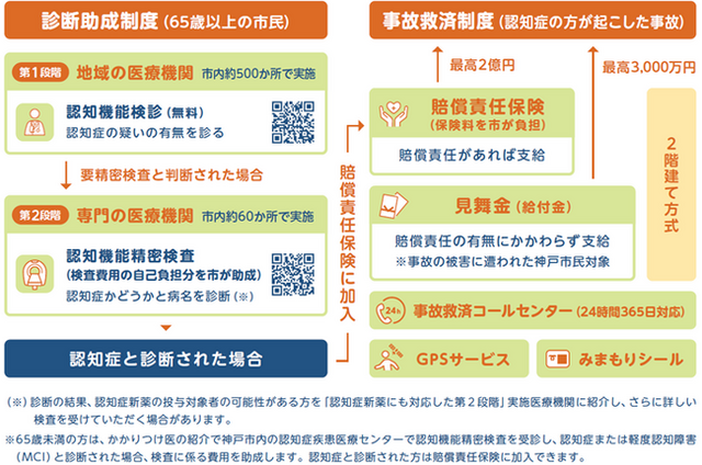 ・診断助成制度(2019年1月~)は、65歳以上の高齢者が医療機関での2段階の認知症診断を自己負担ゼロで受診できる“全国初”の制度です。