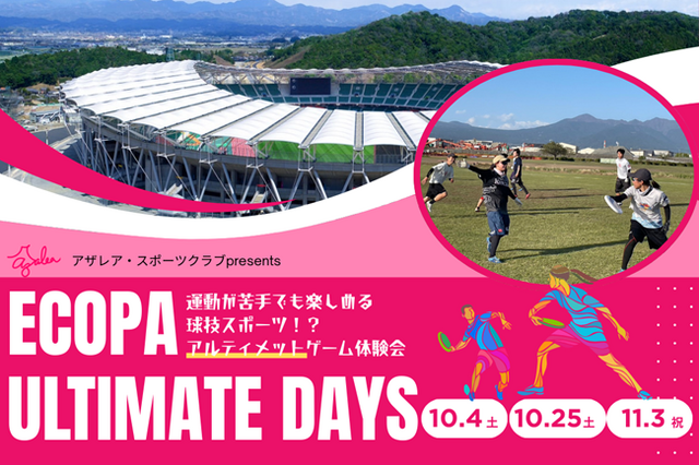 一般社団法人 アザレア・スポーツクラブ(本社:静岡県袋井市/代表理事:久保 晃一)は、2025年10月4日(土)・25日(土)、11月3日(祝)の全3日程で、男女問わず子どもから大人まで、運動が苦手な方でも誰もが気軽に楽しめるアルティメットゲーム体験イベント『ECOPA ULTIMATE DAYS』を初めて開催いたします。