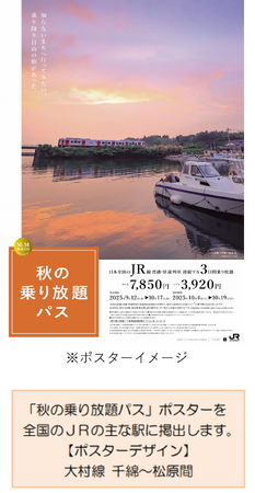 JRグループでは、10月14日の「鉄道の日」に合わせて、普通列車の旅を満喫していただくため、2025年度も「秋の乗り放題パス」および「秋の乗り放題パス北海道新幹線オプション券」を以下のとおり発売します。