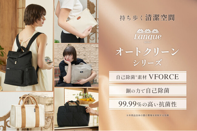 LANQUEは「大切なものを入れるバッグだからこそ、いつも清潔であってほしい」という願いから誕生しました。ナノテクノロジーを応用した独自の『自己除菌素材 VFORCE』※を採用し、内部を常に清潔に保ちやすいのが特長です。