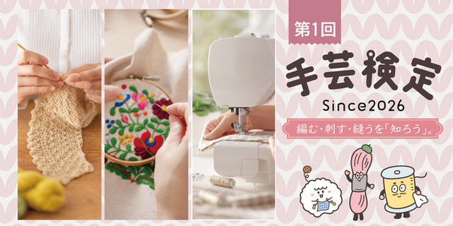 株式会社ヴォーグ学園(所在地:東京都千代田区)は、編み物、刺繍、ソーイングの知識を問う「第1回手芸検定」を、2026年1月25日(日)に全国4都市のリアル会場試験およびオンライン試験にて全国一斉開催します。