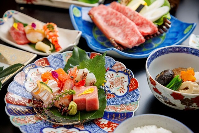 大江戸温泉物語グループで唯一の会席料理を提供する「わんわんリゾート 矢田屋松濤園」では、四季折々の海の幸・山の幸を、料理長が技術の粋をつくして腕を振るい仕立てます。会席料理は「基本会席」と「特選料理」の2種類をご用意。季節の食材と、加賀野菜などの地元食材“じわもん”を使った、繊細な会席料理をお楽しみください。