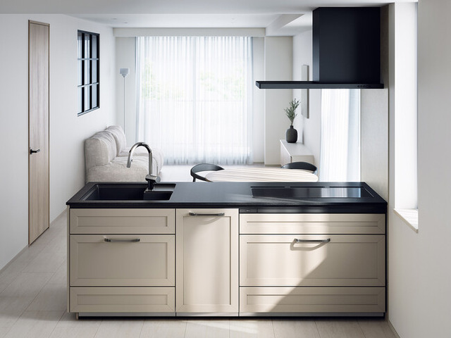 (フラットワイドコンロ、フロントオープン食洗機、ラウンドアクセスシンク)を搭載