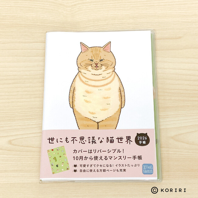 アイピーフォー株式会社(本社:東京都豊島区、代表取締役社長:小濱 剛)がライセンスを取り扱っている「世にも不思議な猫世界」は、2026年版のマンスリー手帳を発売!今回は、2024年9月に発売した人気絵本『ねこのケーキやさん』(金の星社)の絵柄が新登場♪カバーはリバーシブルで、お好みに合わせてご使用いただけます!透明のカバーが付いているので、表紙を汚してしまう心配もありません☆