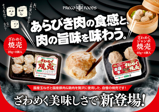 総合食品卸の株式会社プレコフーズ(本社:東京都品川区、代表:高波 幸夫※1)は、2025年8月より『ざわめくジャンボ焼売』『ざわめく焼売』をスーパーマーケット(※2)で順次販売し、大変ご好評をいただいております。