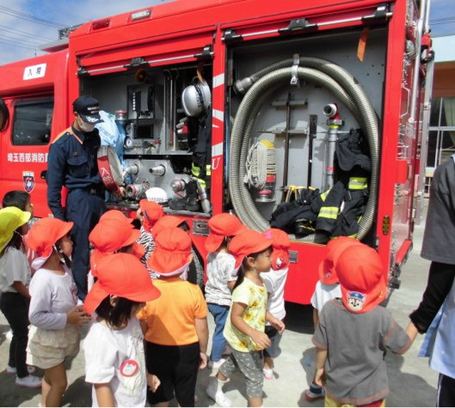 参加:園児59名(1歳~5歳児)、消防署職員4名