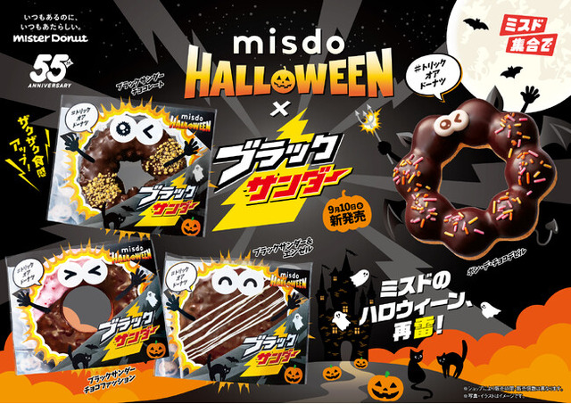 株式会社ダスキン(本社:大阪府吹田市、社長:大久保 裕行)が運営するミスタードーナツは、9月10日(水)から、有楽製菓株式会社(本社:東京都小平市、社長:河合 辰信)が手掛ける大人気のお菓子「ブラックサンダー」とのコラボレーションを今年も展開し、人気ドーナツがハロウィーン仕様に変身した『MISDO HALLOWEEN×ブラックサンダー』全4種を期間限定で発売します。