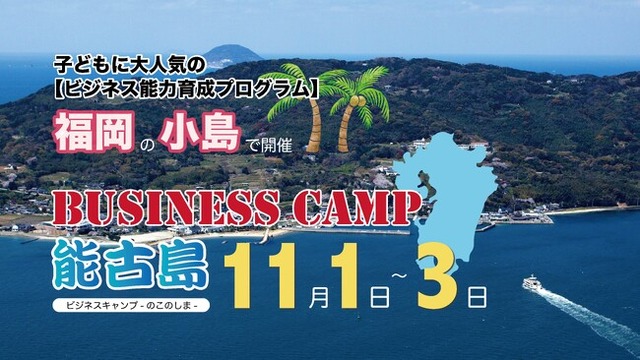 8月に大人気だった教育キャンプの第2弾!今度は島で開催です子ども向け教育コンテンツとして大人気の「ビジネスキャンプ」の福岡版が、8月に続き11月にも開催されます。舞台は福岡県の小島にある「能古島キャンプ村」。