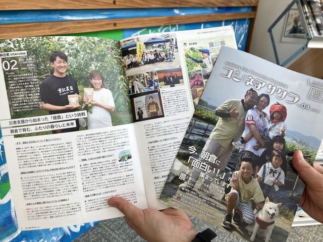表紙・巻頭インタビューは、あまおうに魅せられて東京から朝倉に移住し、あまおう農家へ新規就農した海老澤誠さん。マガジンはB5サイズ・12ページ。今、朝倉に「面白い!」が集まっています。