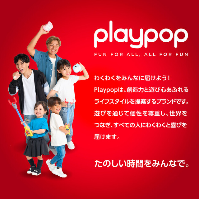 「Playpop」は、特定のジャンルや年齢層にとらわれず「Fun for all, All for fun」を体現するブランドとして、日本全国のご家族やキダルトの皆様に、新しい遊びとライフスタイルの提案をしてまいります。