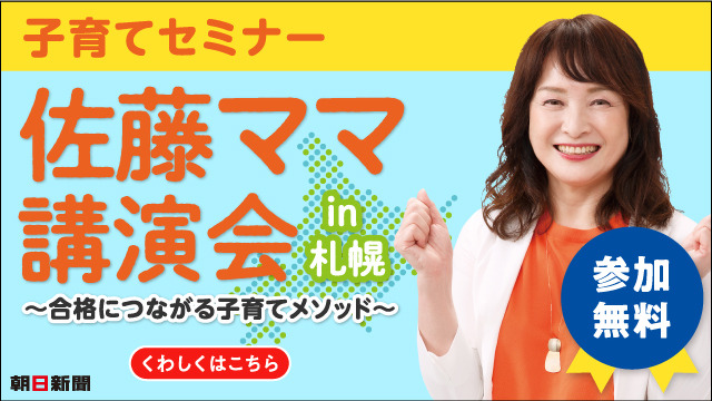 株式会社朝日新聞社(代表取締役社長CEO :角田克)は、4人の子どもを東京大学理科三類(医学部)合格に導いた「佐藤ママ」こと佐藤亮子さんの無料講演会を、札幌国際ビル(国際ホール)にて開催します。