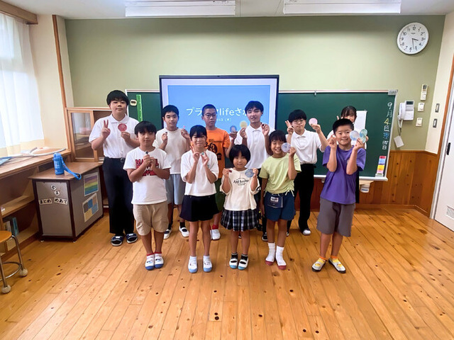 唐津市立馬渡小中学校でプラスマLIFEさがの活動