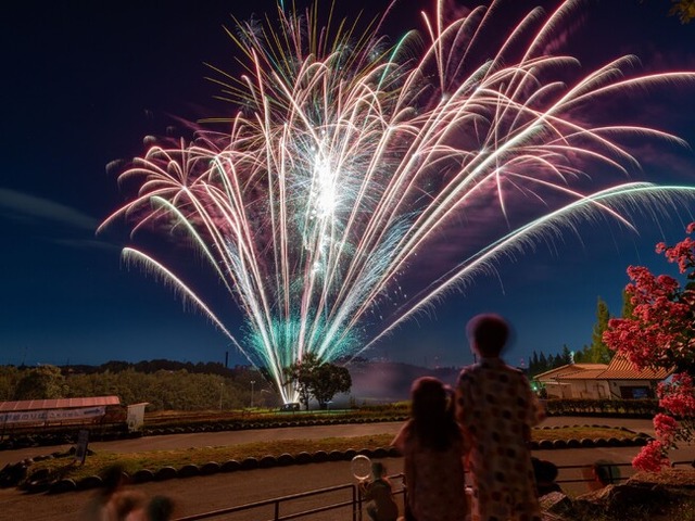 盆踊りのフィナーレには、約5分間のミニ花火ショーを開催!音楽とともに間近に打ち上がる花火が、夜空を美しく彩ります。