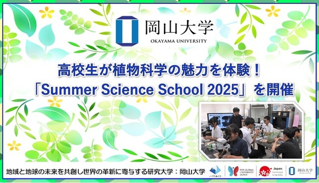 国立大学法人岡山大学(本部:岡山市北区、学長:那須保友)の高等先鋭研究院を構成するひとつである岡山大学資源植物科学研究所(倉敷市)は、2025年8月1日に夏の高校生向け実験体験イベント「Summer Science School(SSS)」を開催しました。当日は、資源植物科学研究所所属の教員がスタッフや大学院生と全9コースを開講し、高校生33人に資源植物科学研究所が推進する先端研究や植物科学の魅力的な世界の一端を味わえる実験を体験してもらいました。