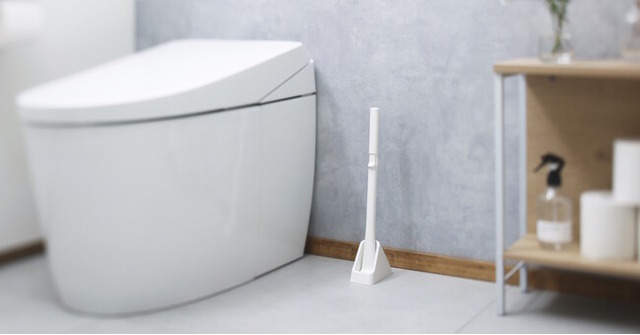 角度がついたL字カーブネックで、フチ裏までらくに届き、隅々まできれいにできます。使用後は付属のケースに収納、トイレブラシに比べて場所を取りません。柄もケースも抗菌加工されており清潔に使えます。