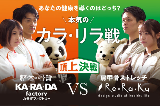 整体×骨盤サロン「カ・ラ・ダ ファクトリー」(以下 カラダファクトリー)を展開する株式会社ファクトリージャパングループ(本社:東京都千代田区、代表取締役社長:高橋 健介、以下 ファクトリージャパン)は、リラクゼーションスタジオ Re.Ra.Ku を中心に全国で300店舗以上を展開するリラクグループを運営する株式会社メディロム・ウェルネス(本社:東京都港区、代表取締役 江口 康二、以下 メディロム)と、2025年10月に対決型コラボレーション企画「本気のカラ・リラ戦」を開催することを決定しましたのでお知らせいたします。