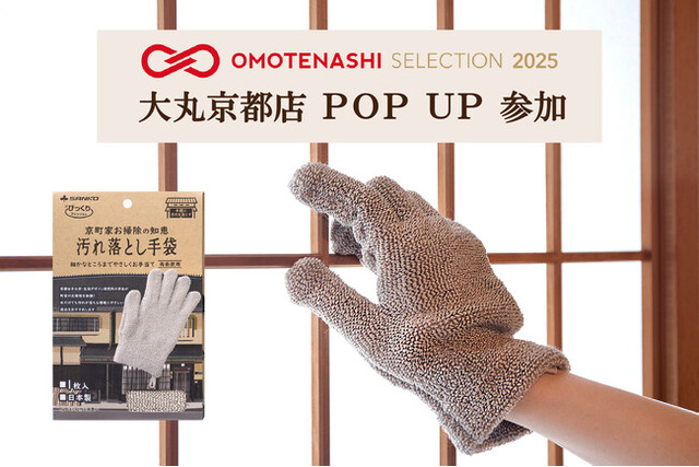 「おもてなしセレクション」は、日本の優れた“おもてなし心”あふれる商品やサービスを発掘し、世界へ発信することを目的に2015年に創設されました。その受賞アイテムの中から、今回は11社の品々が大丸京都店に集結し、サンコーは今年金賞を受賞した「京町家お掃除の知恵 汚れ落とし手袋」をはじめとする、掃除用品を5アイテムを出店します。