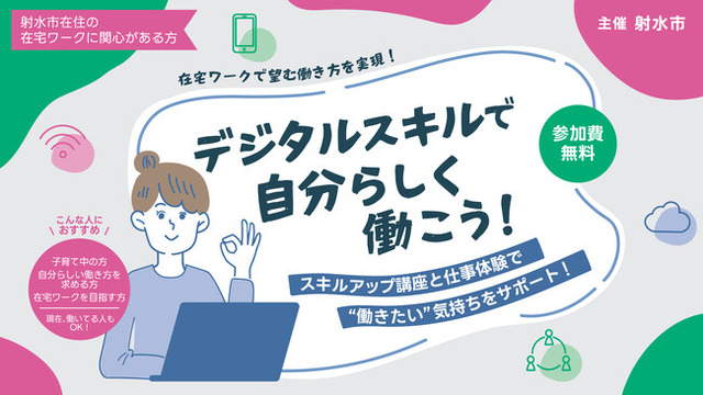 本講座は、育児や介護、家庭の事情などによりフルタイムでの就業が難しい方々に向けて、在宅での就労に必要なスキルを基礎から学べるプログラムです。講座は無料で、受講後には地域企業から切り出した、報酬付きの仕事体験「チャレンジジョブ」も実施します。