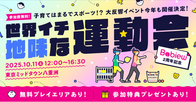ベビーグッズの口コミサイト「Babiew(べビュー)」を運営するBEFFY株式会社(本社:東京都渋谷区、代表取締役CEO:金木りな)は、サービス開始2周年を記念し、2025年10月11日(土)に、東京ミッドタウン八重洲内で「世界イチ地味な運動会 2025 by Babiew」を開催します。