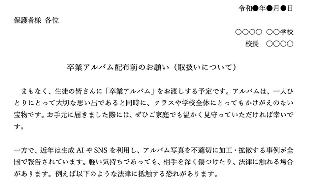 近年、SNSや生成AIの普及により、卒業アルバム写真が不適切に利用される事例が急増しています。