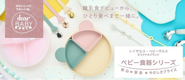 トイザらス・ベビーザらスでは、赤ちゃんの成長に寄り添うベビー食器『dear BABY』を新発売いたします。『dear BABY』は見た目の愛らしさと機能性、安全性を両立したトイザらス・ベビーザらス オリジナルブランドです。