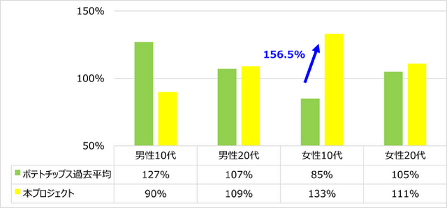・特に女性10代の購入率は過去の同カテゴリー平均値と比較して156.5%と大幅に上回り、