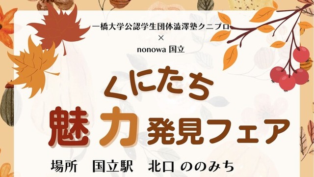 〇株式会社JR中央線コミュニティデザイン(本社:東京都小金井市/代表取締役社長:小澤裕)は、学生との地域共創の一環として、一橋大学公認学生団体澁澤塾クニプロ(東京都国立市/代表:半田晴都/以下クニプロ)と2023年から国立の魅力を発信するイベント「くにたち魅力発見フェア」を開催しています。