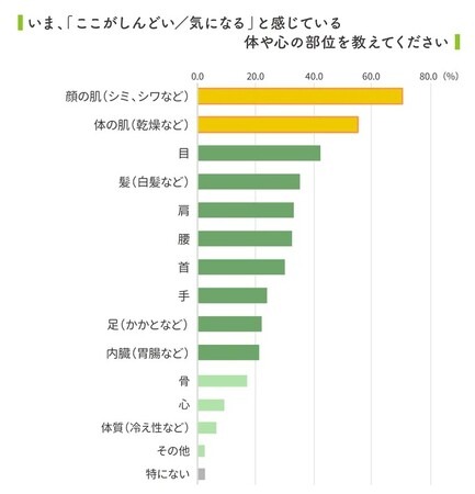 子育て世代女性の約7割が、シミやシワをはじめとした肌トラブルをしんどいと感じていることがわかります。
