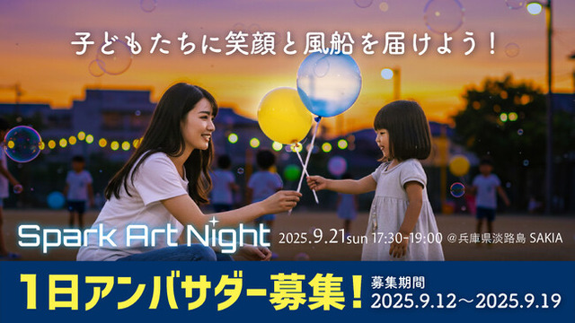 株式会社ファーストイノベーション(本社:東京都中央区晴海3-13-1 52F、代表取締役社長:木ノ根雄志)は、官民連携の地方創生団体『一般社団法人つながり応援』(理事長:清水国明、副理事長:木ノ根雄志・梶川隆史)が展開する地方創生活動『つながり応援プロジェクト』の一環として、2025年9月21日(日)に兵庫県淡路島SAKIAで開催される「Spark Art Night(スパークアートナイト)」にて、来場者へ光る風船を配布し、子どもたちや家族に笑顔を届ける「1日アンバサダー」の募集を開始しました