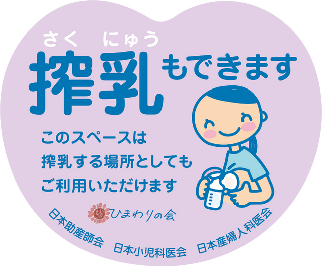 NPO法人ひまわりの会(東京都、会長:野田聖子)は、国土交通省と連携し、全国の高速道路サービスエリアを中心に約250か所の授乳スペースに「搾乳もできますステッカー」の掲示を進めています。