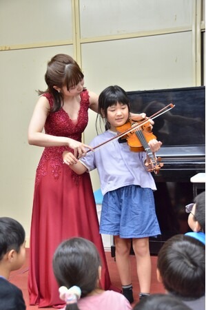 9月9日(火)、奈良市立富雄北小学校で、小学2年生の児童ら約80人がバイオリンの試奏体験及び演奏鑑賞の授業を受けました。