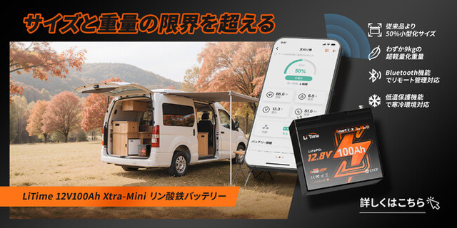 エネルギーソリューションを提供するブランドLiTimeは、最小・最軽量の12V100Ahリン酸鉄バッテリーとなるLiTime 12V 100Ah Xtra Miniを9月10日よりAmazonにて発売します。