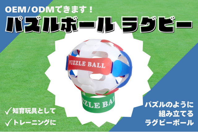 累計1億円以上の応援グッズ売上実績を持つ、オリジナルグッズや販促品・小売り商品のOEM/ODMができる大同至高株式会社(本社:愛知県名古屋市、代表取締役社長:川瀬康輝)は、創業90年の節目の年にオリジナルPPクラフトの新商品として、「パズルボール ラグビー」を発表しました。1枚のシートからパズルのように組み立てると、ラグビーボールができあがる知育玩具です。
