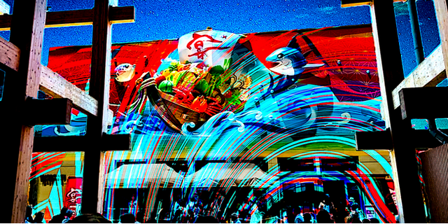 演出内容 : 水間観音で展開中のプロジェクションマッピングをベースに、万博向けに再構成。食文化・地域の歴史・未来へのメッセージを光と音で表現。