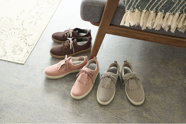 ・キルト装着時はトラッド感のある華やかな印象。外すと素材の良さが際立つミニマルなスニーカー