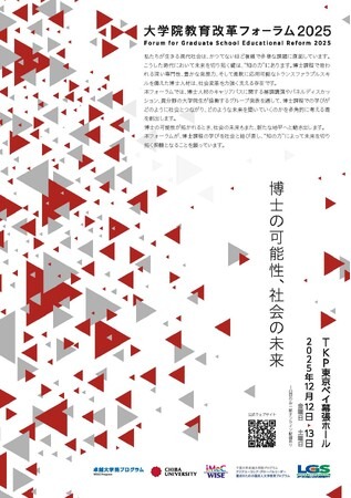 千葉大学はこの度、「大学院教育改革フォーラム2025―博士の可能性、社会の未来―」を主催校として開催します。本フォーラムでは、アカデミアや企業の研究職にとどまらず、多様なフィールドで活躍する博士人材を迎え、博士課程での学びが社会でどのように活かされ、いかに新たな可能性を拓いているのかを考えます。