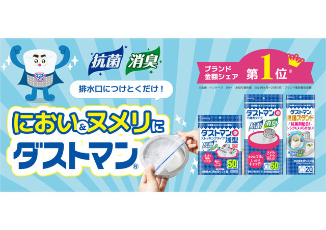 ダストマンは、これまで「キチントさんシリーズ」の一部として販売を行ってまいりました。しかし、ダストマンのブランド力や、「水切り袋市場のブランド金額シェアNo.1(※)」の地位をより強固にするために、「ダストマン」として弊社商品ブランドの中で独立させることといたしました。