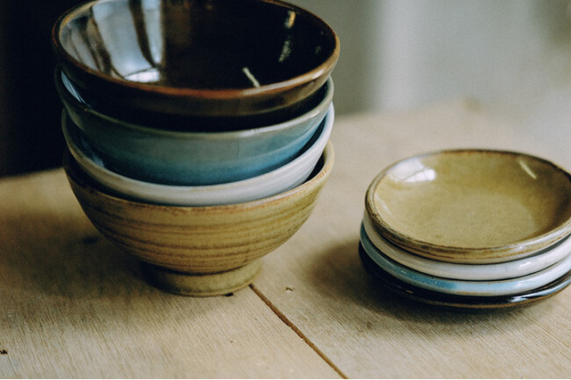 Standard Productsで発売する笠間焼のシリーズは、5色の釉薬を使った茶碗と小皿、全10種です。窯元「向山窯(こうざんがま)」とのコラボレーションで生まれたオリジナル商品で、土づくりから成形、乾燥、素焼き、施釉(釉薬を塗布すること)、本焼きまで、ひとつひとつ手作業で丁寧に製作されています。全て1点物のため、ぜひ店頭で実物をご覧ください。