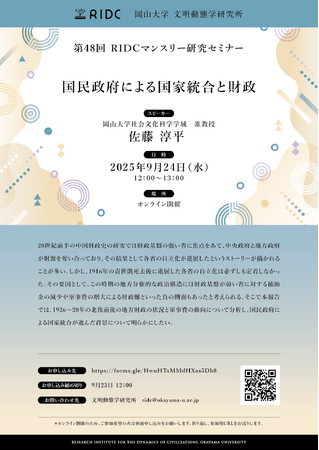 第48回となるRIDCマンスリー研究セミナーを下記の通りオンラインで開催します。