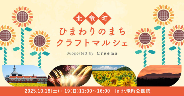 日本最大のハンドメイドマーケットプレイス「Creema(クリーマ)」を運営する株式会社クリーマ(本社:東京都渋谷区、代表取締役社長:丸林耕太郎)は、2025年10月18日(土)、19日(日)に、北海道北竜町で「ひまわりのまちクラフトマルシェ Supported by Creema」を初開催いたします。
