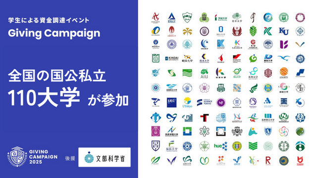 「次世代の教育に資本をまわす」をミッションに掲げる株式会社Alumnote(アルムノート、本社:東京都千代田区、代表取締役:中沢 冬芽)は、学生の研究活動や課外活動の応援・支援を目的に、学生団体による活動資金調達を行うイベント「Giving Campaign 2025」を10月10日(金)から19日(日)まで開催します。本イベントは、文部科学省後援のうえ、全国の国公私立大学110大学にて同時開催されます。