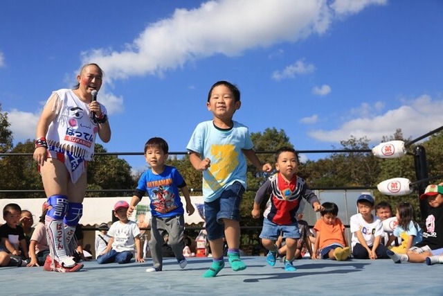 おごおりば元気にするバイ!小郡市民まつりの子ども向け新企画・ちびっこプロレス教室の参加者を募集します。リングの上で、九州プロレスの選手と楽しく体を動かそう!