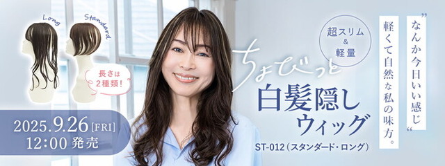 商品名:『ちょびっと白髪隠しウィッグ』ST-012「スタンダード」/ ST-012L「ロング」価格:スタンダード 税込4,290円 / ロング 税込4,620円