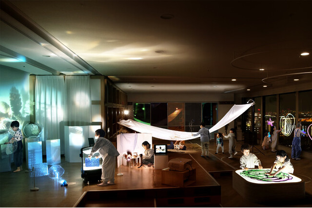 リゾナーレ大阪のアトリエは通常、朝9:00~夕方18:15までの営業で、日中はガラス張りの空間に光が差し込み、開放感と明るさに満ちています。 夜のアトリエでは、敢えて照明を落とし、光に意識が向きやすくなる環境を用意。昼とはまったく異なる表情を見せるアトリエは、子どもたちの“見る力”や“感じる力”を静かに刺激します。 夜に活動するという特別感は、子どもたちの好奇心をくすぐり、非日常の体験として記憶に残ることでしょう。 夕食後や就寝前のひとときに、親子で心を通わせながら、光と遊び、感性を育む時間を過ごすことができます。