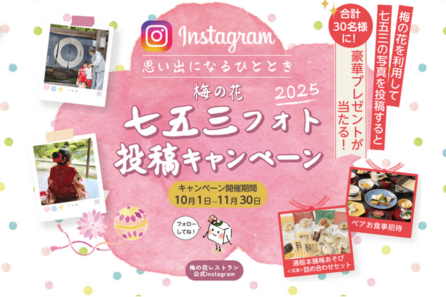 株式会社 梅の花サービス(本社:福岡県久留米市、代表取締役:野田安秀)が運営する「梅の花グループ レストラン店舗」では、2025年10月1日~11月30日まで、「思い出になるひととき」梅の花 七五三フォト投稿キャンペーンを開催いたします。