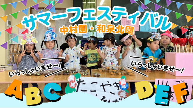 和泉北園では保護者も参加し、お面をつけて屋台やゲームを一緒に楽しむ姿が見られました。子どもたちは自分たちで準備し協力する過程を通じ、達成感や仲間と作り上げる喜びを経験しました。