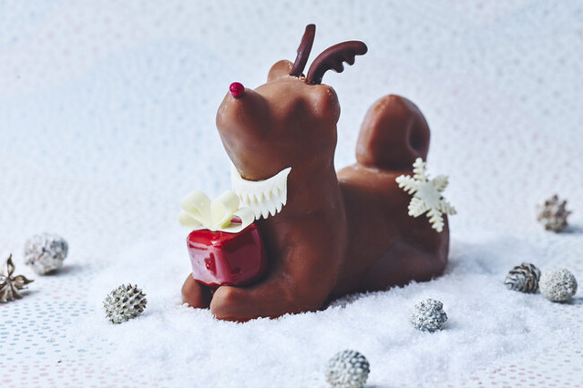 そしてトナカイ・ハチの手元には、キラリと輝くプレゼントをイメージしたチョコレートが。思わずシャッターを切りたくなるフォトジェニックな佇まいと記憶に残る贅沢な味わいが、心躍るホリデーシーズンをより一層特別なものに演出します。